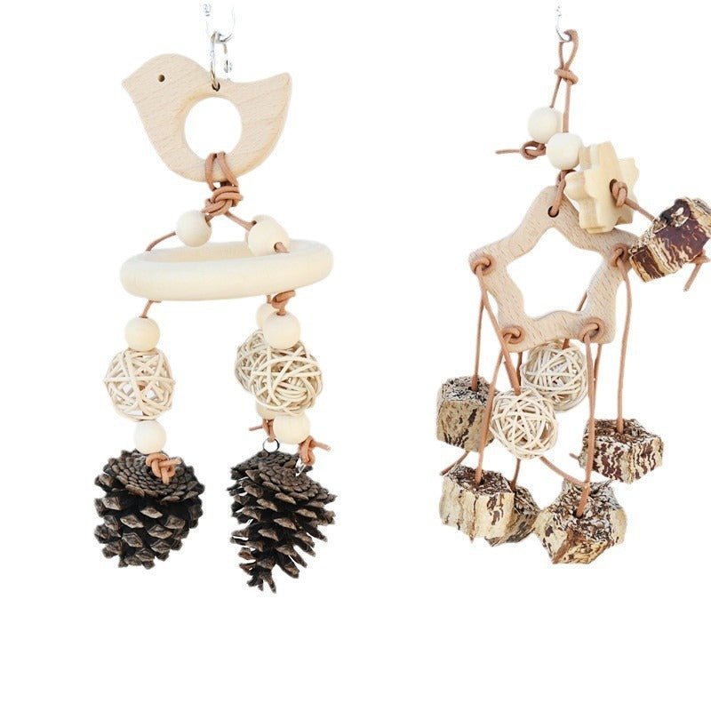 Natural Wood Parrot Toy for Teeth Relief